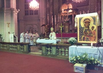 Die Ikone Unserer Lieben Frau von Tschenstochau wurde feierlich in einer Prozession in die Kathedrale gebracht und neben dem Hauptaltar aufgestellt. Wieder erklang die schöne Melodie der "Schwarzen Madonna", mit der sich die Gruppe der Kapuzinerbrüder von Maria verabschiedete.