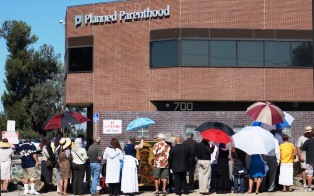 Parishioners applauded the good news. Later many would join the Black Madonna as she traveled to Planned Parenthood in the city of Orange. She arrived at 10:00 am and groups from other parishes turned out to share the sustained presence in front of the abortion mill till 2:00 pm.