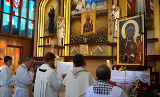 The Black Madonna had arrived at the Church of Our Lady of the Bright Mount in Los Angeles, CA in the evening of August 22nd, 2014. The pastor, Father Rafał Dyguła, SChr, is with the Society of Christ, a worldwide apostolate with an emphasis to care for the spiritual needs of Polish immigrants.