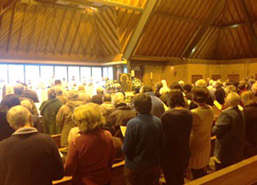 ...On Saturday 10th November after departing from the resounding welcome and joy-filled veneration of a packed cathedral in Birmingham, the Icon was solemnly greeted at the door of the parish of Our Lady Queen