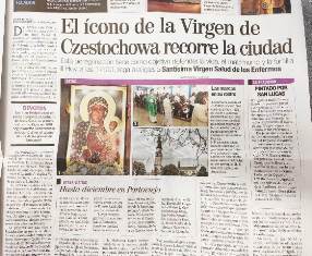 Diario “Expreso” de circulación nacional en Ecuador publica la noticia de la peregrinación de la réplica del Icono de Czestochowa en la “iniciativa denominada ‘De océano a océano’ y cuyo fin es defender la vida y la familia.”