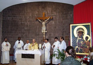Uroczystej Mszy – po hiszpańsku i po polsku – przewodniczył wikariusz biskupi ks. Alfonso Lozano, a koncelebrowali kapłani z Hiszpanii, Polski i Kamerunu. W homilii ks. Lozano przypomniał historię Ikony Częstochowskiej i jej znaczenie dla Kościoła w Polsce. Przedstawił także ideę i przebieg peregrynacji „od Oceanu do Oceanu”. Podkreślił, że w dominującej aktualnie kulturze bardzo potrzebne jest stanowcze zaangażowanie w obronie ludzkiego życia od poczęcia aż do naturalnej śmierci. „Dzieci niepełnosprawne także mają prawo, aby pomimo wykrycia ich choroby mogły się bezpiecznie urodzić” – podkreślił ks. Lozano.