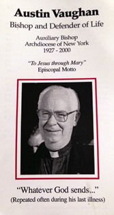 Biskup Vaughn często publikował swoje wypowiedzi, wskazując na katolicki obowiązek obrony ludzkiego życia. W 1988 roku ostentacyjnie potępił Demokratów, nazywając ich partią aborcjonistów. W otwartym liście ostrzegł gubernatora Mario Cuomo, że naraża się na potępienie w piekle, jeżeli się nie nawróci i nie przestanie popierać aborcji. Gubernator odpowiedział, że Sobór Watykański II zanegował istnienie piekła, co oczywiście nie jest prawdą. M. Cuomo usiłował sugerować, że biskup Vaughn chce wysłać go do piekła, co także jest nieprawdą. Biskup po prostu wypełniał swoją rolę pasterza i ostrzegał gubernatora, jako błądzącego człowieka, jakie są konsekwencje ciężkiego grzechu bez skruchy. Czynił to dla jego własnego dobra.