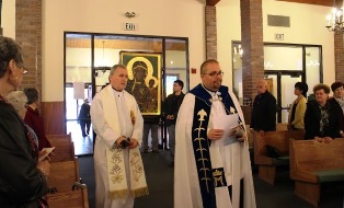 Merrillville2Tworząc pełen gracji i modlitwy nastrój dla wizyty Matki Bożej, o. Łukasz Kleczka SDS kustosz sanktuarium powitał Ikonę Częstochowską w imieniu oo. salezjanów i zgromadzonych wiernych. Po uroczystym wniesieniu Ikony do świątyni odmówiono Koronkę do Miłosierdzia Bożego w języku angielskim. Następnie rozpoczęła się adoracja, podczas której odmawiano Różaniec.
