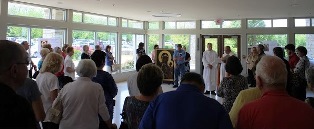 Dalsza trasa pielgrzymki Ikony Częstochowskiej prowadziła do antiocheńskiej cerkwi św. Andrzeja w Lexington. Matkę Bożą powitał ks. Tom Gallaway, który poprzedniego dnia był gościem w parafii Pax Christi i prowadził śpiew Akatystu. Ikona stanęła na odpowiednim postumencie i rozpoczęła się modlitwa. Ks. Gallaway przedstawił gości wszystkim świętym na ikonach znajdujących się w świątyni. Lexington7Po jednej stronie ołtarza była wyobrażona Matka Boża, a po drugiej Nasz Pan, Jezus Chrystus.