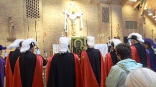 Rycerze Kolumba prezentowali broń, a podczas adoracji pełnili wartę honorową po obu stronach Ikony. Ludzie podchodzili indywidualnie, przykładając obrazki. Wiele osób było bardzo wzruszonych.