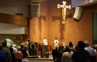 Do kościoła św. Kiliana w Mission Viejo Ikona Częstochowska dotarła w poniedziałek 18 sierpnia 2014 r. Chociaż był to dzień powszedni, kościół po brzegi wypełnił tłum wiernych, wielu z nich pochodzenia latynoskiego. W wieczornej Mszy św. uczestniczyło ok. 800 osób.
