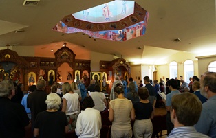 Ikonę Częstochowską witał rektor parafii protojerej Aleksander Fedoroff. Po uroczystym wniesieniu Ikony i stawieniu Jej na środku świątyni wierni mieli możliwość przyłożenia się i adorowania Matki Bożej. Chór wspaniale odśpiewał uroczysty Akatyst ku czci Bogurodzicy. Po uroczystości zaproszono wszystkich do sali parafialnej w podziemiu kościoła, gdzie była możliwość miłego spotkania wielu zaprzyjaźnionych osób. Ks. West miał możliwość osobistego poznania pani Carmen Brown i jej męża, którzy organizowali to spotkanie.