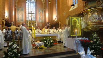 Na granicy miasta Torunia oczekiwała na Matkę Bożą szczególna delegacja: proboszcz bydgoskiej katedry katolickiej św.św. Janów, ks. prałat Marek Rumiński razem z proboszczem toruńskiej parafii prawosławnej św. Mikołaja ks. protoirejem Mikołajem Hajduczenia.