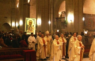 W piątkowy wieczór 4 stycznia ks. bp Julián Ruiz Martorell oczekiwał na Matkę Bożą Częstochowską przed katedrą de Santa María (Świętej Maryi) w Huesca w Aragonii. W mieście tym urodził się św. męczennik Wawrzyniec (Laurencjusz), który w 258 roku został spalony na ruszcie podczas prześladowań chrześcijan w Rzymie.