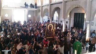 ...Rankiem następnego dnia, w niedzielę 16 grudnia, odprawiono jeszcze jedną, pożegnalną już Mszę św. w Irún, po czym opiekę nad Ikoną przejęła grupa pro-vita, tym razem z diecezji Bilbao.