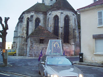 ...Wieczorem Ikona Matki Bożej miała do pokonania ponad 30 km. Opuściła XV dzielnicę Paryża, by udać się do parafii św. Jerzego w Belloy-en-France, miejscowości na dalekich północnych przedmieściach stolicy, niedaleko Chantilly i Senlis. Bernard stał w paryskich korkach. Przyjechał