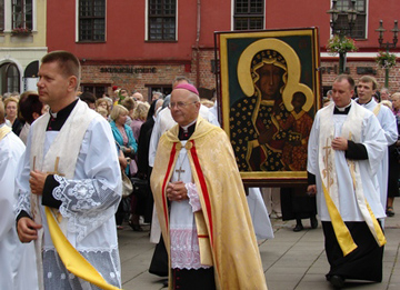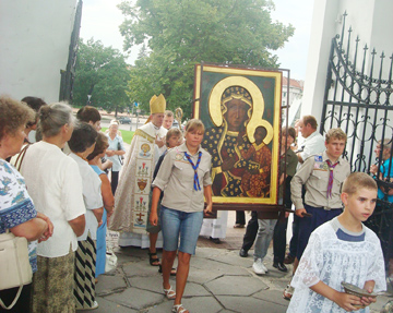 ...Ok. godz. 10 rano, w niedzielę, 12 sierpnia Ikona Częstochowska podróżująca przez świat w obronie życia przekroczyła Polską granicę. Po wzruszającym pożegnaniu przed bazyliką św. Michała w Mariampolu Ikonę przejęła polska eskorta. Na czele jechało 10 motocykli z Rajdu Katyńskiego.