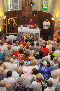 ...W poniedziałkowy ranek, 6 sierpnia w święto Objawienia Pańskiego Ikona Częstochowska zatrzymała się w kaplicy Niepokalanego Poczęcia Najświętszej Maryi Panny. Już o 8:00 rano kościólek był pełny. Mszę św. odprawił i homilię wygłosił