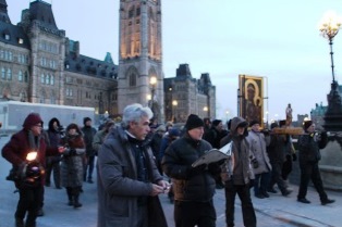 Pod Parlamentem Kanady Matka Boża modli się razem ze swoim mężem, św. Józefem.