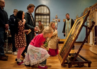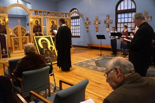 À noite, foi celebrado na igreja missa e o canto  Akatista foi cantado em honra da Santíssima Virgem Maria. Akatista é cantando em pé, a palavra em si significa "não estar sentado". Toda a liturgia foi lindamente cantada, seguida pela adoração do Ícone.