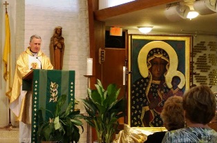LongBeach Alhambra7À porta do templo, a Mãe de Deus no ícone de Czestochowa recebeu o padre. Larry Parnell OMV e padre Ed Broom OMV pároco. A Missa do Meio dia foi concelebrado pelo padre West com o sacerdote Broom. Mais de 200 pessoas participaram da Eucaristia. Em seguida a Santa Missa eles foi celebrada à noite e ainda mais pessoas participavam dele. Então pe. West deu uma conferência de uma hora sobre o ícone de Czestochowa e a peregrinação "Do Oceano ao Oceano". Naquela noite foi a hora santa e outra missa sagrada na intenção de defender a vida e a adoração.