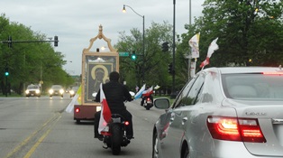 Na noite de 14 de maio, uma delegação da Igreja da Santíssima Trindade com seu pároco, pe. Andrzej Tatliak TChR assumiu o ícone errante de Nossa Senhora de Czestochowa durante a cerimônia de despedida em frente à igreja de St. Jack. Ela continuou sua jornada no Chicago Life Mobil, acompanhada de motociclistas e vários carros. As bandeiras das bandeiras polacas, papal e americanas esvoaçavam ao vento.