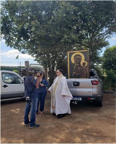 O Ícone da Madonna Negra acolheu os motoristas de motocicletas e carros juntamente com a imprensa local (TV Fronteira), que chegaram para a carreata e motociata, acompanhados de cânticos de louvor marianos, com Luana e Pepeu, que às 13hseguiram em direção ao Santuário Nacional de Santo Expedito, estado de São Paulo.